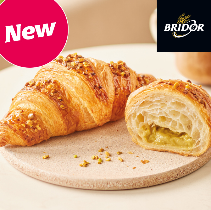 BRAND NEW from Bridor, an indulgent croissant with butter puff pastry and a delicious pistachio filled centre.
